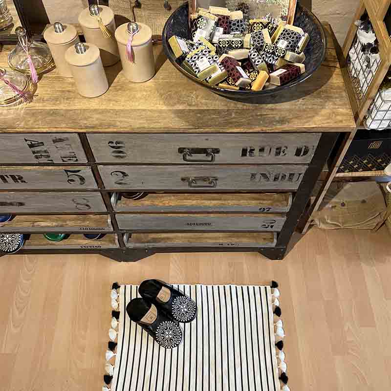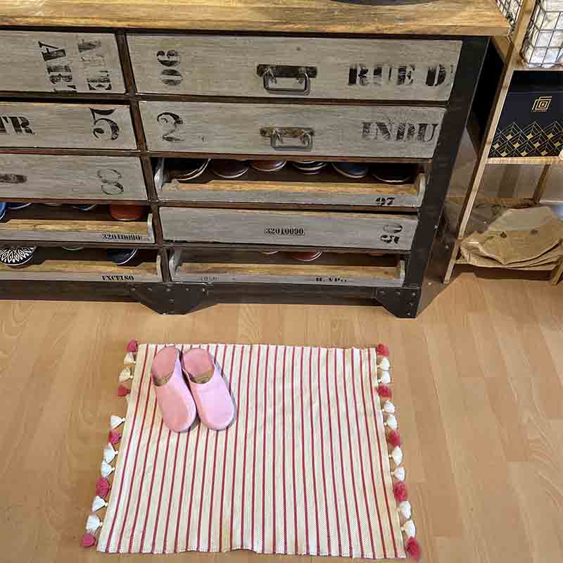 [vc_row type=”in_container” full_screen_row_position=”middle” column_margin=”default” column_direction=”default” column_direction_tablet=”default” column_direction_phone=”default” scene_position=”center” text_color=”dark” text_align=”left” row_border_radius=”none” row_border_radius_applies=”bg” overflow=”visible” overlay_strength=”0.3″ gradient_direction=”left_to_right” shape_divider_position=”bottom” bg_image_animation=”none”][vc_column column_padding=”no-extra-padding” column_padding_tablet=”inherit” column_padding_phone=”inherit” column_padding_position=”all” column_element_spacing=”default” background_color_opacity=”1″ background_hover_color_opacity=”1″ column_shadow=”none” column_border_radius=”none” column_link_target=”_self” column_position=”default” gradient_direction=”left_to_right” overlay_strength=”0.3″ width=”1/3″ tablet_width_inherit=”default” tablet_text_alignment=”default” phone_text_alignment=”default” animation_type=”default” bg_image_animation=”none” border_type=”simple” column_border_width=”none” column_border_style=”solid”][/vc_column][vc_column column_padding=”no-extra-padding” column_padding_tablet=”inherit” column_padding_phone=”inherit” column_padding_position=”all” column_element_spacing=”default” background_color_opacity=”1″ background_hover_color_opacity=”1″ column_shadow=”none” column_border_radius=”none” column_link_target=”_self” column_position=”default” gradient_direction=”left_to_right” overlay_strength=”0.3″ width=”1/3″ tablet_width_inherit=”default” tablet_text_alignment=”default” phone_text_alignment=”default” animation_type=”default” bg_image_animation=”none” border_type=”simple” column_border_width=”none” column_border_style=”solid”][vc_custom_heading text=”Vedligeholdelse” font_container=”tag:h3|text_align:left”][vc_column_text]Måtten er i 100 % bomuld og kan vaskes skånsomt i maskinen ved 30 grader.[/vc_column_text][/vc_column][vc_column column_padding=”no-extra-padding” column_padding_tablet=”inherit” column_padding_phone=”inherit” column_padding_position=”all” column_element_spacing=”default” background_color_opacity=”1″ background_hover_color_opacity=”1″ column_shadow=”none” column_border_radius=”none” column_link_target=”_self” column_position=”default” gradient_direction=”left_to_right” overlay_strength=”0.3″ width=”1/3″ tablet_width_inherit=”default” tablet_text_alignment=”default” phone_text_alignment=”default” animation_type=”default” bg_image_animation=”none” border_type=”simple” column_border_width=”none” column_border_style=”solid”][vc_custom_heading text=”Historien bag” font_container=”tag:h3|text_align:left”][vc_column_text]Disse smukke Marrokanske bademåtter er håndvævede i 100% bomuld og kan bruges i badeværelset eller gæstebadet. Måtterne er lavet i flotte, klare og sommerlige farver, der med deres små kvaster tilføjer et fint og let touch. Bademåtten kan også bruges som et tæppe til entreen eller gæsteværelset. Måtterne er perfekte til både det Skandinaviske og stilrene hjem, med de lyse og rene farver, men egner sig også godt til sommerhuset eller kolonihaven. Så kan du få den Marrokanske og sommerlige stemning ind i hjemmet. Lavet i samarbejde med designer i Marrakech.[/vc_column_text][/vc_column][/vc_row]