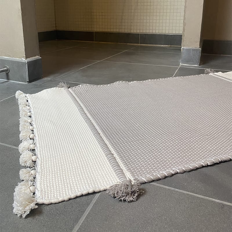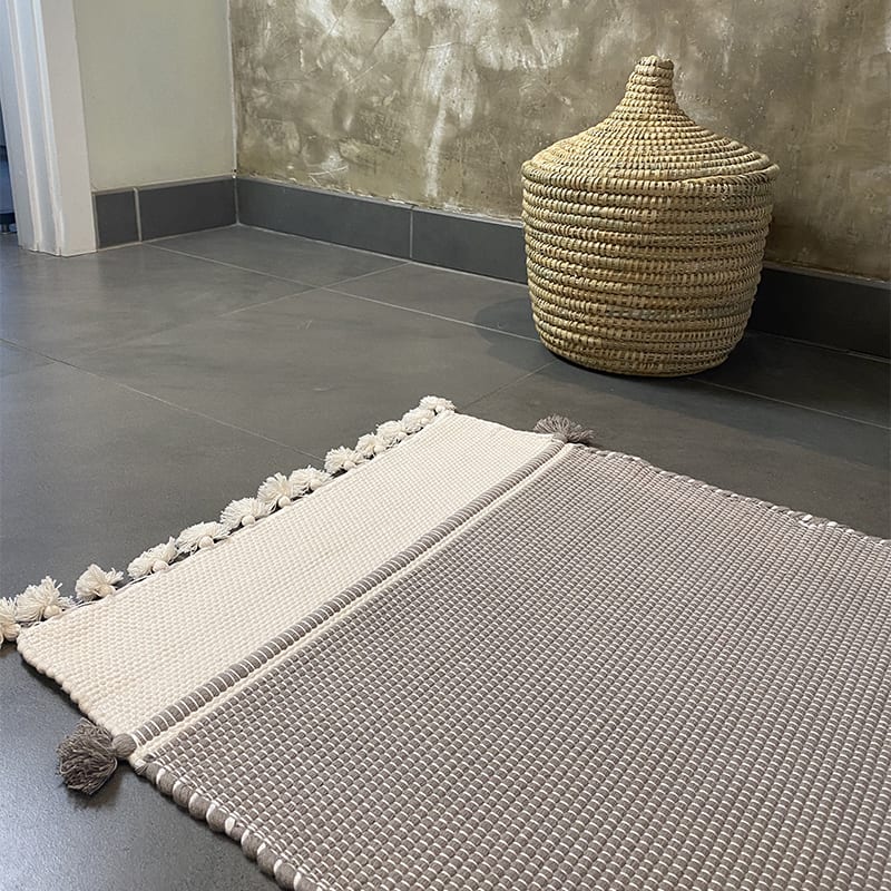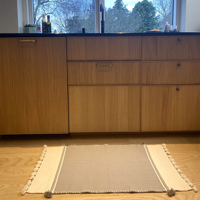 [vc_row type=”in_container” full_screen_row_position=”middle” column_margin=”default” scene_position=”center” text_color=”dark” text_align=”left” overlay_strength=”0.3″ shape_divider_position=”bottom” bg_image_animation=”none”][vc_column column_padding=”no-extra-padding” column_padding_position=”all” background_color_opacity=”1″ background_hover_color_opacity=”1″ column_link_target=”_self” column_shadow=”none” column_border_radius=”none” width=”1/3″ tablet_width_inherit=”default” tablet_text_alignment=”default” phone_text_alignment=”default” overlay_strength=”0.3″ column_border_width=”none” column_border_style=”solid” bg_image_animation=”none”][vc_video link=”https://vimeo.com/416218536″ el_aspect=”43″][/vc_column][vc_column column_padding=”no-extra-padding” column_padding_position=”all” background_color_opacity=”1″ background_hover_color_opacity=”1″ column_link_target=”_self” column_shadow=”none” column_border_radius=”none” width=”1/3″ tablet_width_inherit=”default” tablet_text_alignment=”default” phone_text_alignment=”default” overlay_strength=”0.3″ column_border_width=”none” column_border_style=”solid” bg_image_animation=”none”][vc_custom_heading text=”Vedligeholdelse” font_container=”tag:h3|text_align:left”][vc_column_text]Tæppet/måtten er i 100 % bomuld og kan vaskes skånsomt i maskinen ved 30 grader.[/vc_column_text][/vc_column][vc_column column_padding=”no-extra-padding” column_padding_position=”all” background_color_opacity=”1″ background_hover_color_opacity=”1″ column_link_target=”_self” column_shadow=”none” column_border_radius=”none” width=”1/3″ tablet_width_inherit=”default” tablet_text_alignment=”default” phone_text_alignment=”default” overlay_strength=”0.3″ column_border_width=”none” column_border_style=”solid” bg_image_animation=”none”][vc_custom_heading text=”Historien bag” font_container=”tag:h3|text_align:left”][vc_column_text]Det smukke håndvævede bomuldstæppe kan bruges som lille dekorativt tæppe i din gang, køkken, gæstebadeværelse, værelse eller i badeværelset som bademåtte.