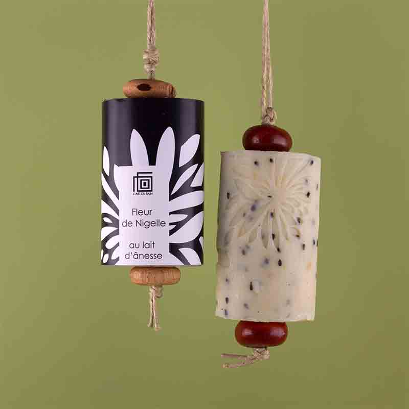 Smuk sæberulle på ophængssnor med eksklusiv FLEUR DE NIGELLE[/vc_column_text][/vc_column][vc_column column_padding=”no-extra-padding” column_padding_tablet=”inherit” column_padding_phone=”inherit” column_padding_position=”all” column_element_spacing=”default” background_color_opacity=”1″ background_hover_color_opacity=”1″ column_shadow=”none” column_border_radius=”none” column_link_target=”_self” column_position=”default” gradient_direction=”left_to_right” overlay_strength=”0.3″ width=”1/3″ tablet_width_inherit=”default” tablet_text_alignment=”default” phone_text_alignment=”default” animation_type=”default” bg_image_animation=”none” border_type=”simple” column_border_width=”none” column_border_style=”solid”][vc_custom_heading text=”Historien bag” font_container=”tag:h3|text_align:left”][vc_column_text]Sæber fra L’art du bain som er skabt i Marrakech i 2004 og har produktion i Nante i Frankrig siden 2016.