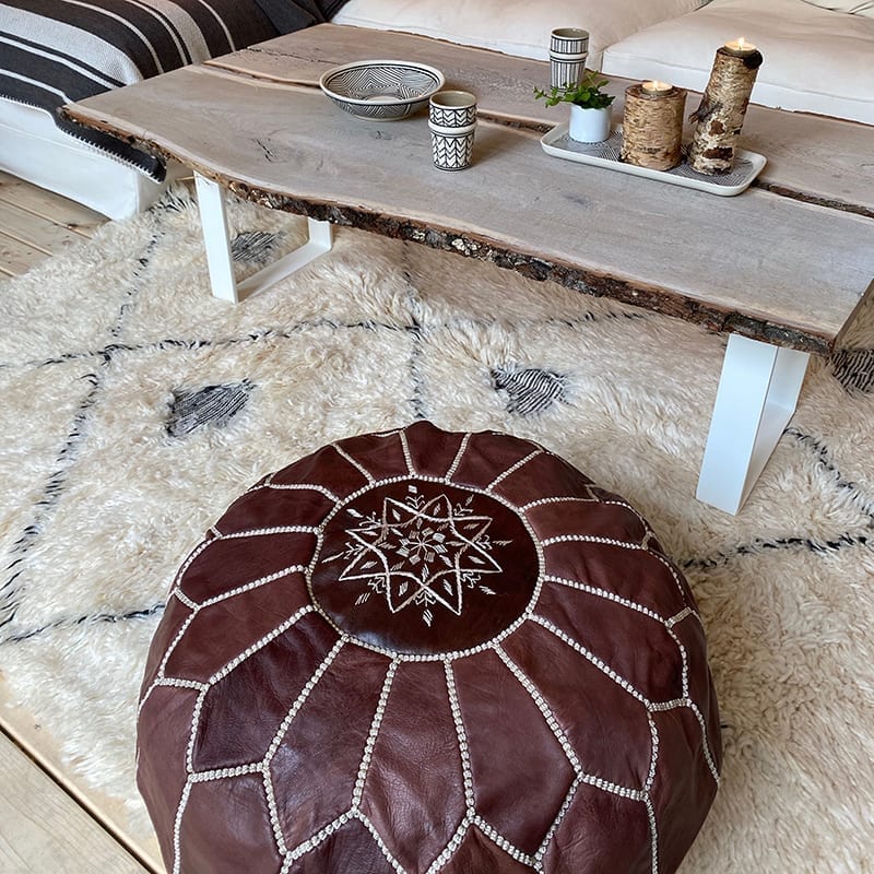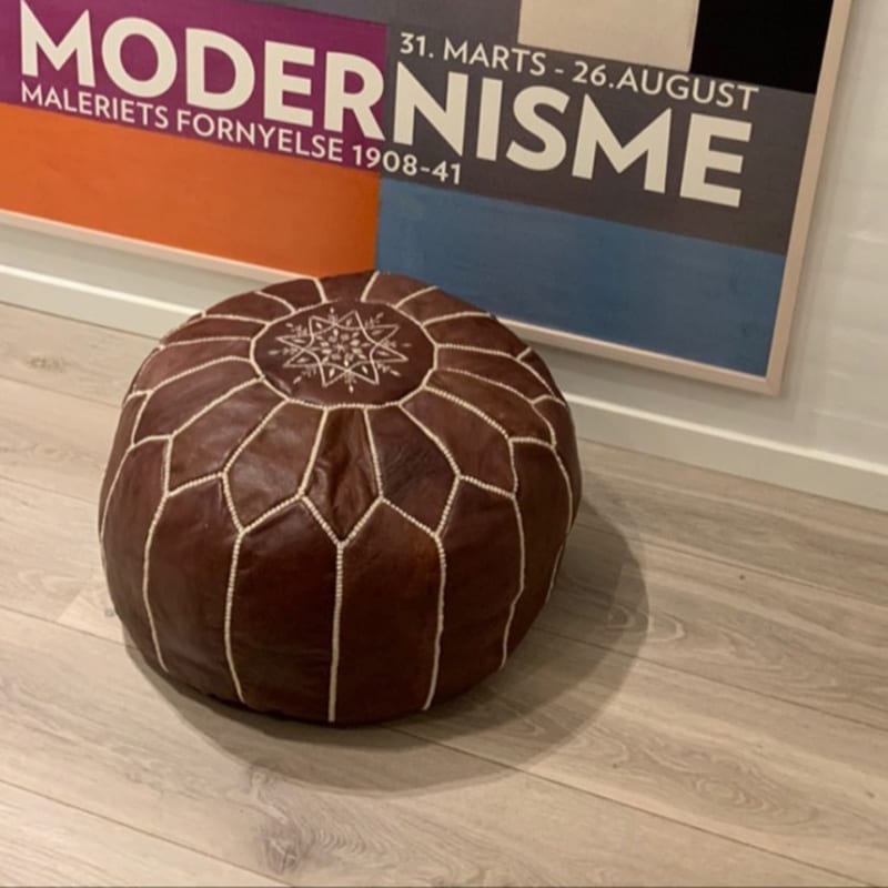 Marokkansk puf i mørkebrunt læder
