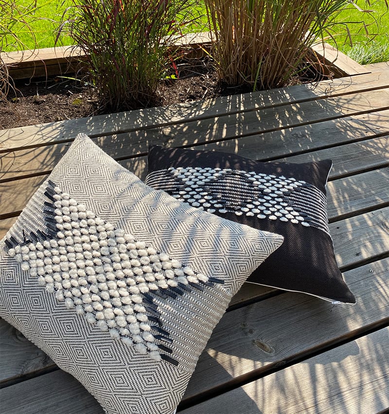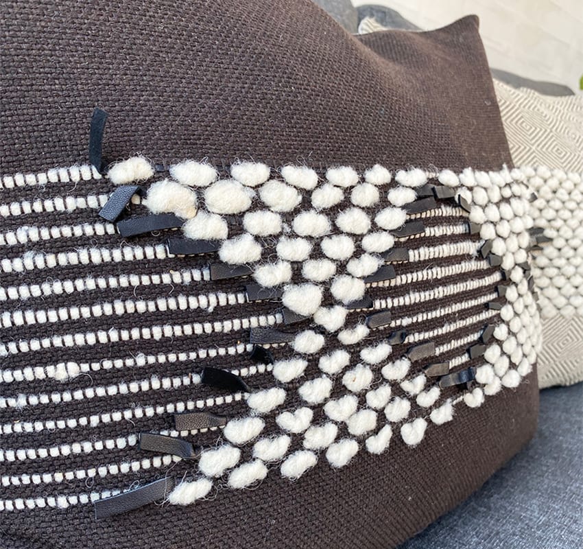 [/vc_column_text][/vc_column][vc_column column_padding=”no-extra-padding” column_padding_position=”all” background_color_opacity=”1″ background_hover_color_opacity=”1″ column_link_target=”_self” column_shadow=”none” column_border_radius=”none” width=”1/3″ tablet_width_inherit=”default” tablet_text_alignment=”default” phone_text_alignment=”default” overlay_strength=”0.3″ column_border_width=”none” column_border_style=”solid” bg_image_animation=”none”][vc_custom_heading text=”Historien bag” font_container=”tag:h3|text_align:left”][vc_column_text]Pudebetrækkene er lavet i samarbejde med en designer i Marrakech og er helt unikke. De er håndvævede i en blanding af bomuld og uld. Det unikke mønster på puden er vævet med uld og læder og danner et smukt krydsmønster. Betrækkene er med kraftig lynlås, så man let kan afmontere betrækkene og vaske dem.