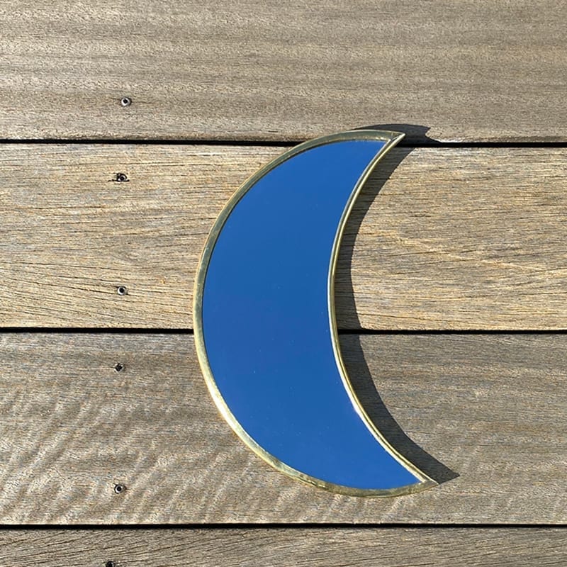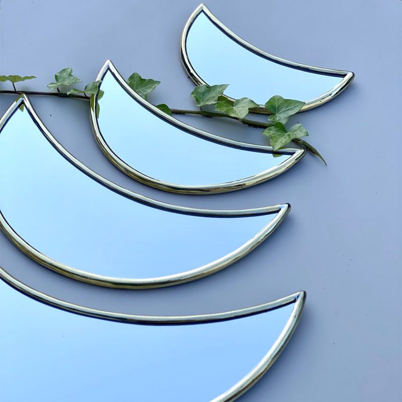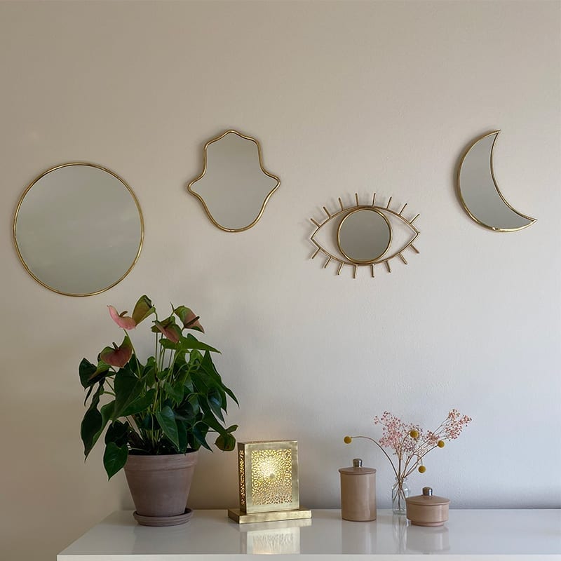 Håndlavet marokkansk spejl formet som en halvmåne med guldkant.