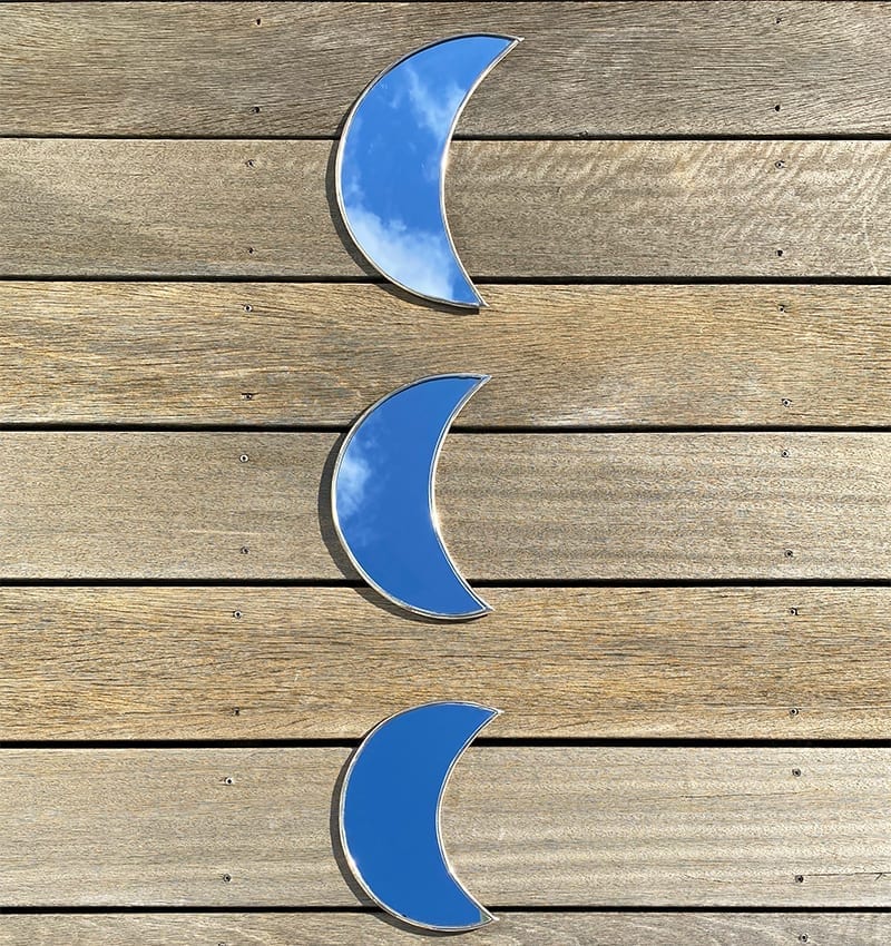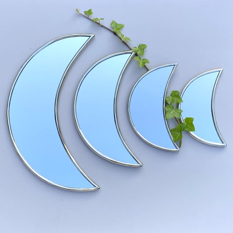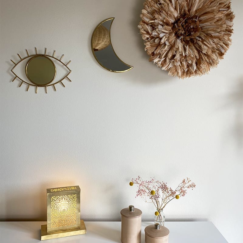 Håndlavet marokkansk spejl formet som en halvmåne med sølvkant.